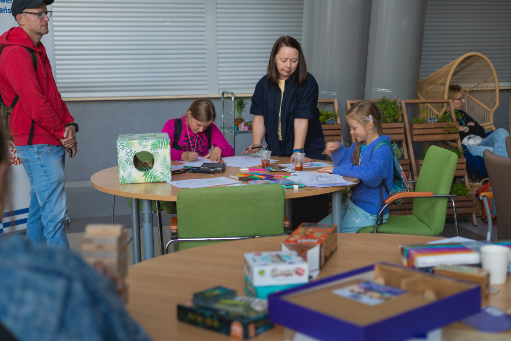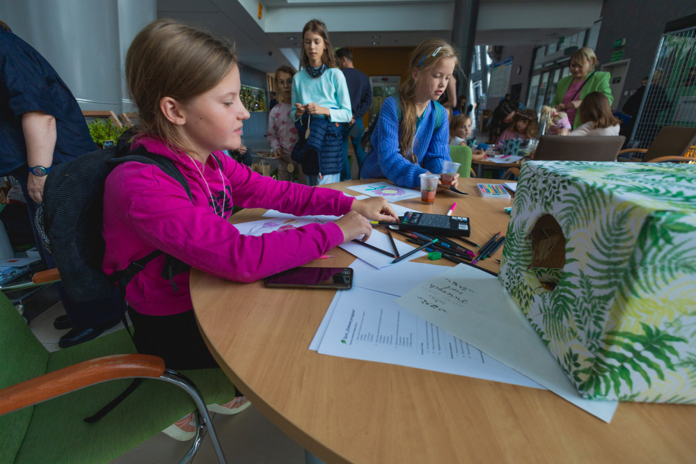 Strefa kreatywna dla najmłodszych – dzieci chętnie rysowały i ozdabiały własne ekologiczne medale.