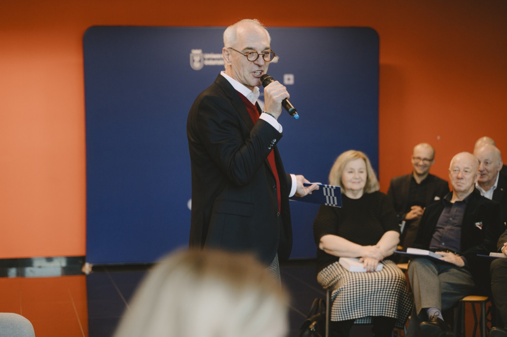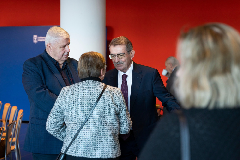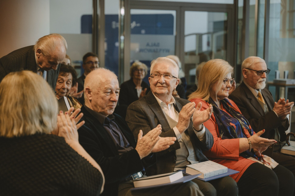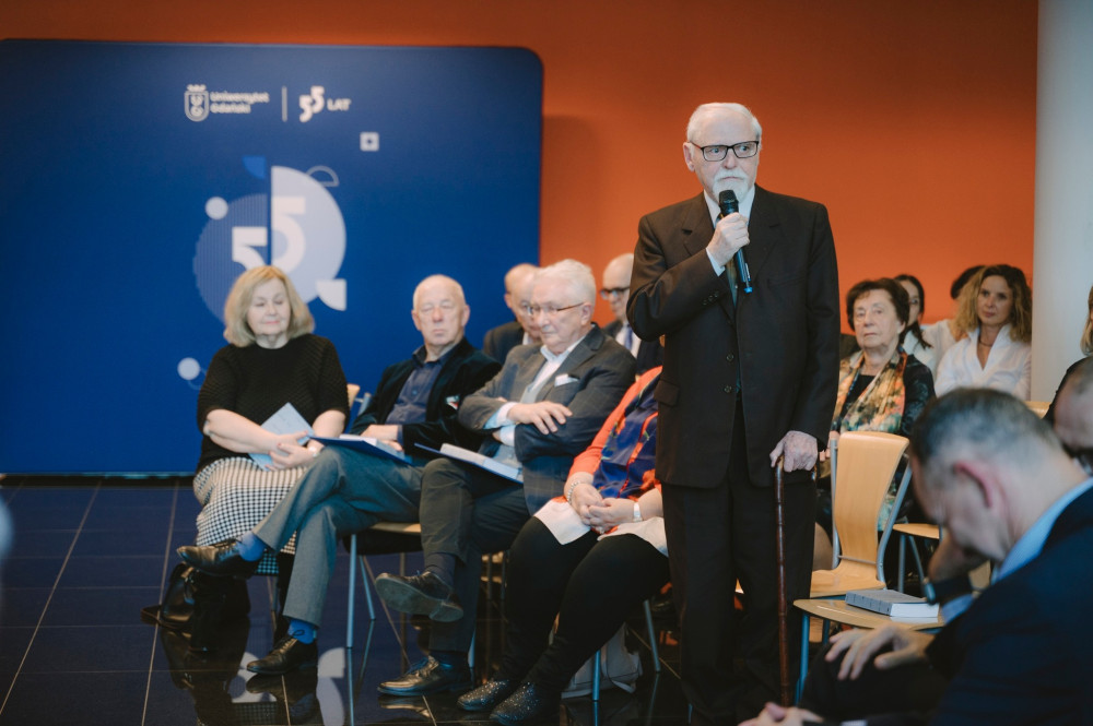 Głos zabrał ponadto prof. Jerzy Błażejowski, który mówił o motywacjach i inspiracjach przy tworzeniu jubileuszowej publikacji, o tym, jak docierał do informacji o prorektorach i rektorach oraz jak w ciągu 55 lat funkcjonowania prorektorów zmieniała się uczelnia.