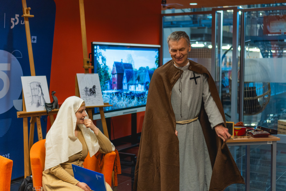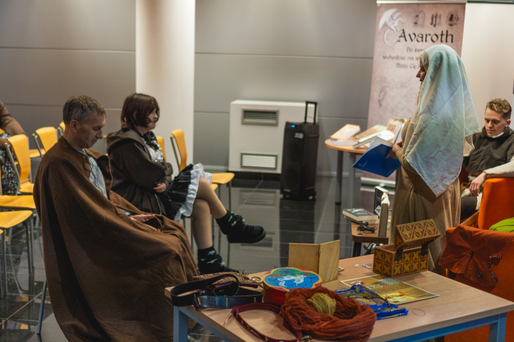 Szczególnym punktem spotkania była rozmowa o tym, czym różni się średniowiecze znane z literatury fantasy od tego prawdziwego, historycznego. Dzięki obecności rekonstruktorów uczestnicy mogli z bliska obejrzeć rekwizyty, posłuchać ciekawostek i przekonać się, jak wiele twórczej swobody i inspiracji łączy oba światy.